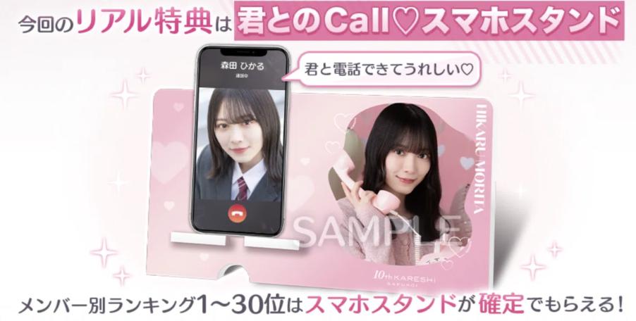 第10回のカレシイベントは前編、中編が2~3期生になっておりリアル特典は、「君とのCall♡スマホスタンド」と「カレシフォト」になります。